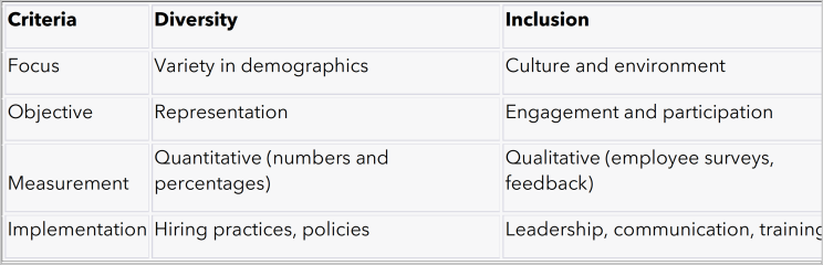 Holistic Approach: Recognizing that diversity and inclusion are not just about demographics but also about creating an inclusive culture where all employees feel valued and supported.