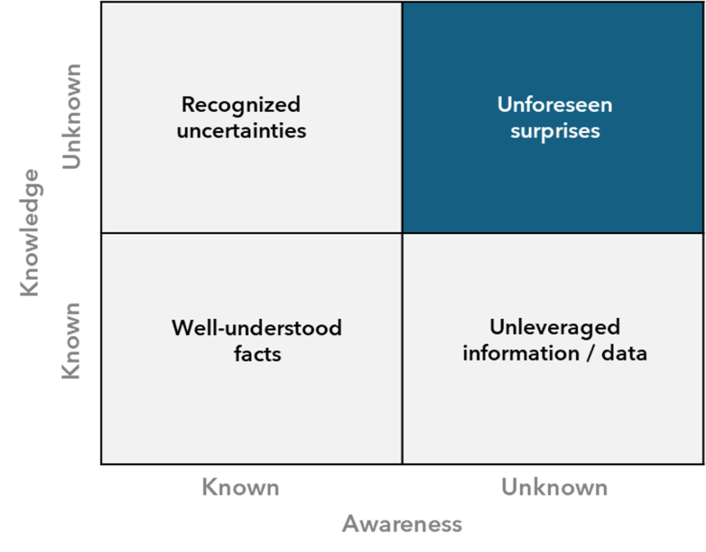 “There are known knowns; there are things we know we know. We also know there are known unknowns; that is to say, we know there are some things we do not know. But there are also unknown unknowns—the ones we don’t know we don’t know.”